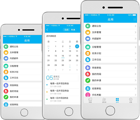 可以将企业内部的各种OA应用搬迁在应用中心。