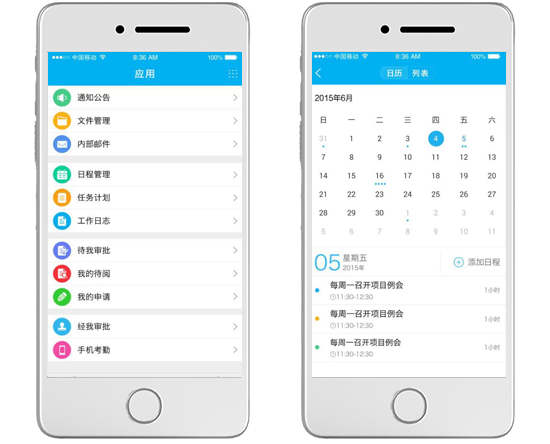 日程组件可以与PC端同步,帮助员工组建客户 拜访计划,会议安排。