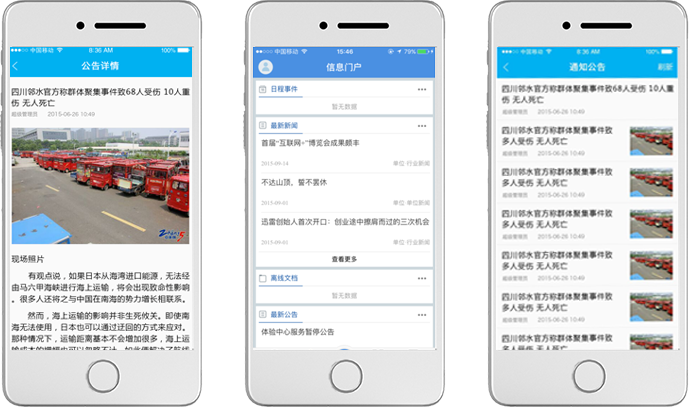 支持移动端快捷查看新闻、审批公告,以及查看、收藏、分享、评论新闻。